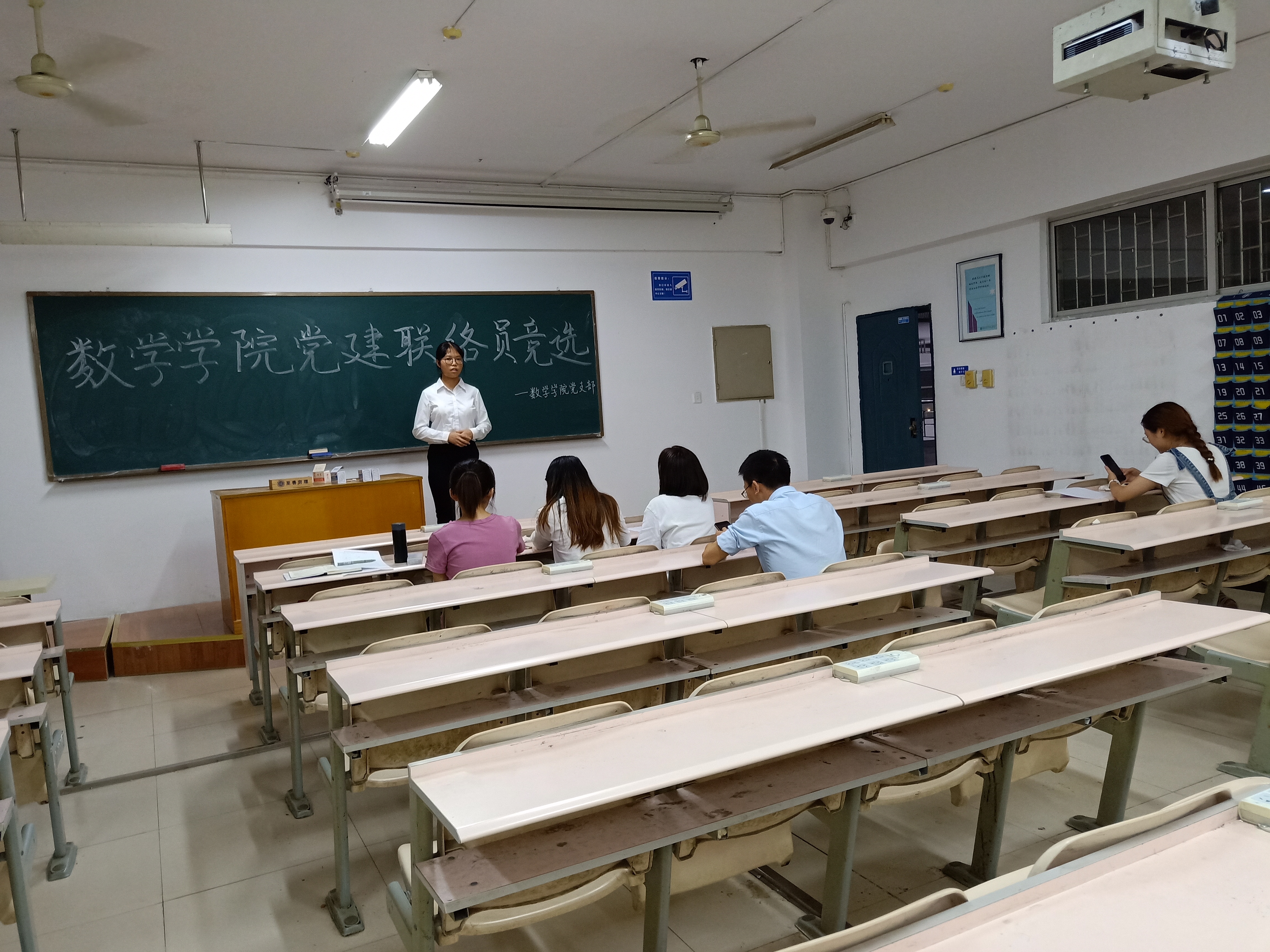 本站讯 9月7日晚,数学学院学生党支部于5304、5303教室举行了数学学院学生党支部党建联络员面试竞选。此次面试的评委为数学学院党支部负责人、党支部支委与党建专员等。17级、18级入党积极分子16人参加竞聘。