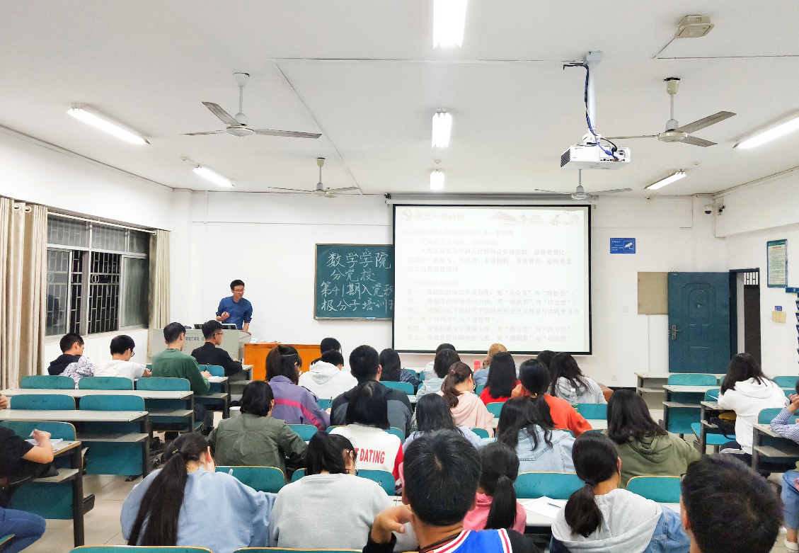 本站讯10月21日19:30于5307,数学学院分党校开展第41期入党积极分子培训(一)。第41期入党积极分子全体人员参加。此次培训由数学学院教工一支部书记,罗德仁同志主讲。