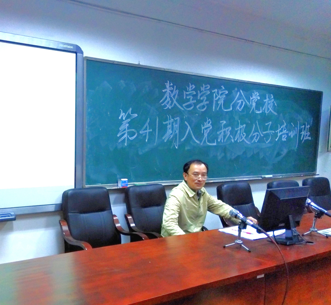 本站讯10月29日19:30于5511,数学学院分党校开展第41期入党积极分子培训(五)。第41期入党积极分子全体人员参加。此次培训由数学学院党总支书记,孙明保同志主讲。