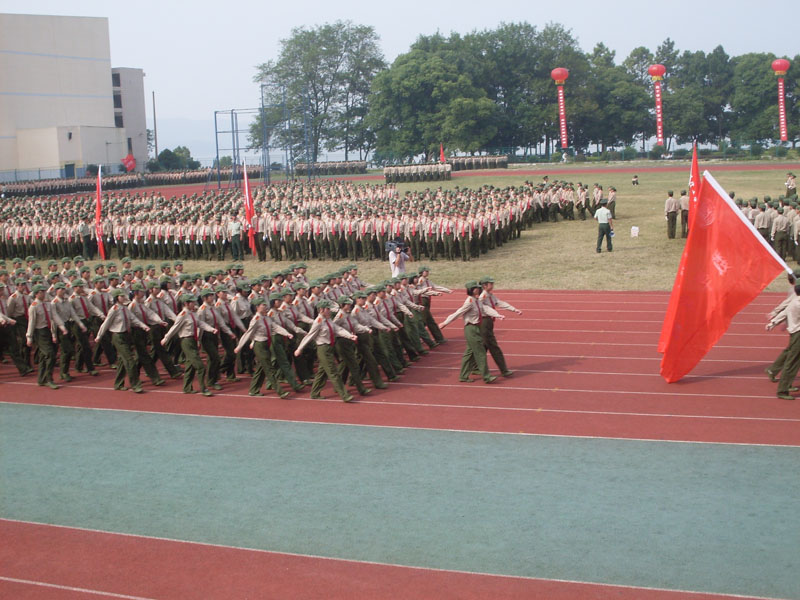 他们飒飒的军姿、稳健的步伐、动天动地的口号彰显超越自我的自信。