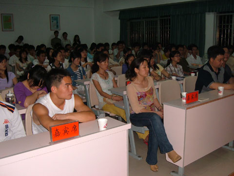 李凤高老师代表数学系对所有考研成功的学生表示祝贺。他对数学系学生考研形势进行了分析,对考研的各项事宜做了详细的说明,鼓励04级学生积极报考。随后张殊歧老师回顾了数学系近几年来的考研情况,从99级开始,数学系的考研率呈上升趋势。今年,共96人报考研究生,30人被录取,其中10人成功考上公费研究生。他鼓励同学们以成功考研的学生为榜样,积极准备,努力学习。