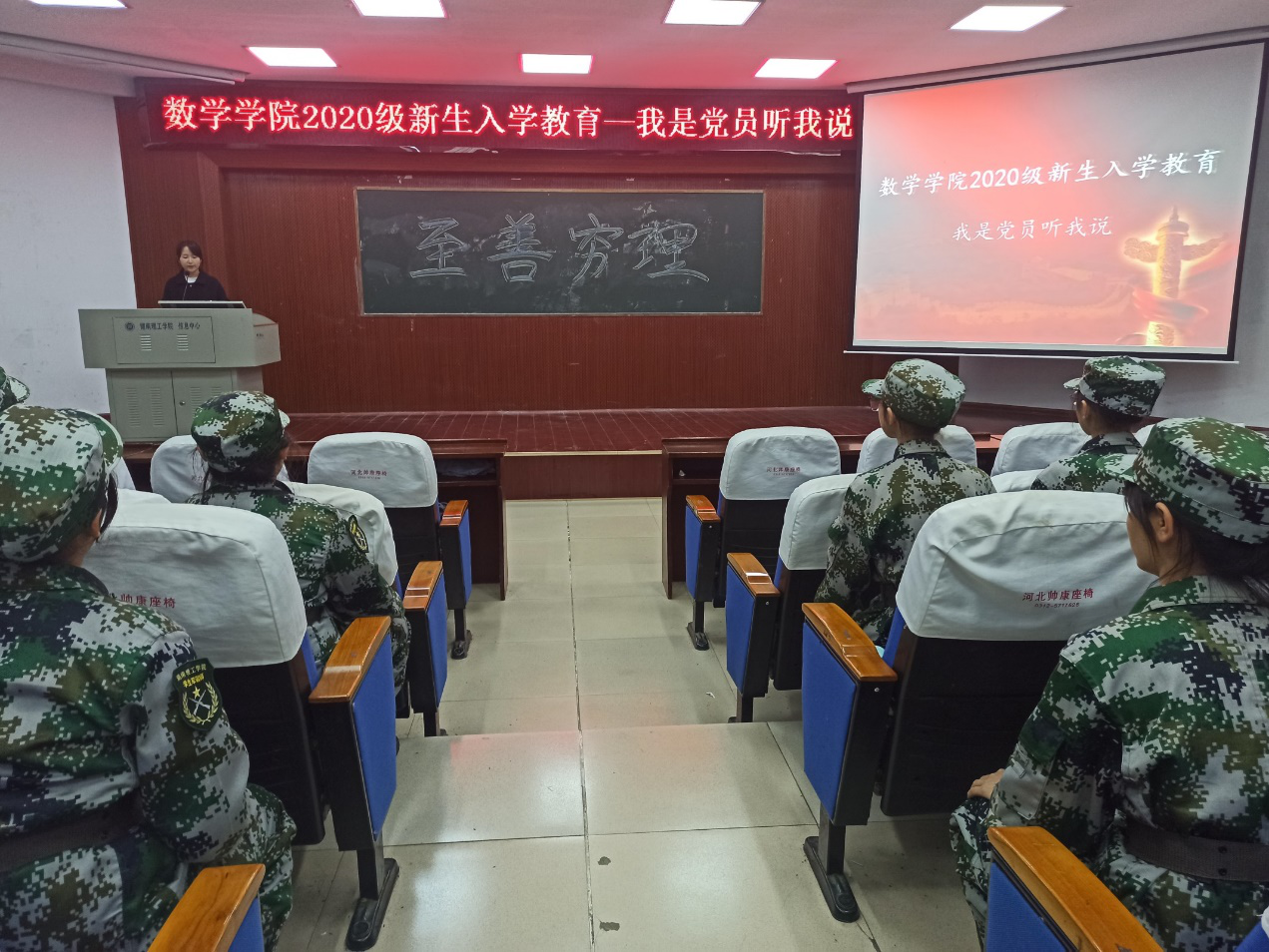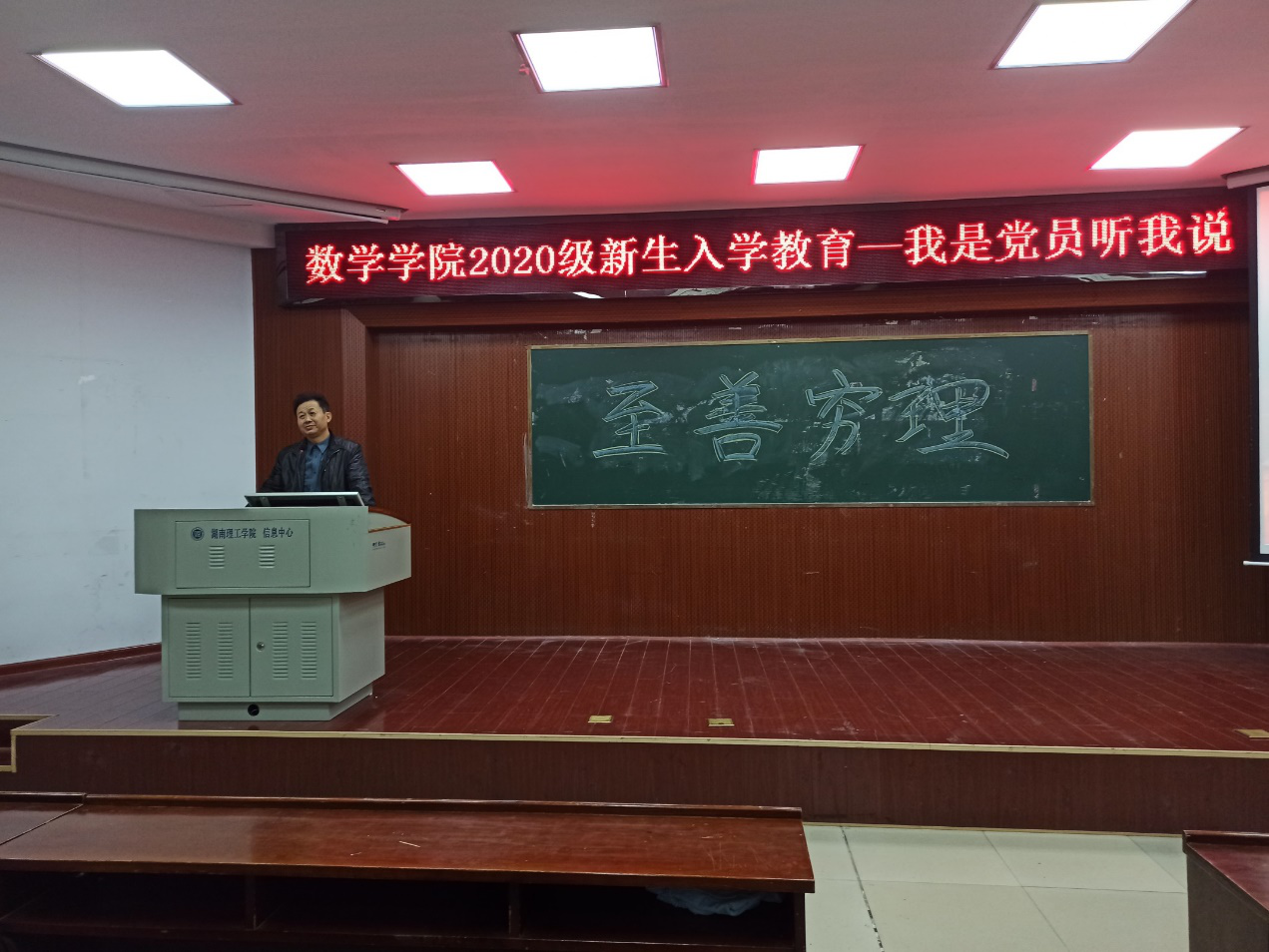 本站讯 10月8日晚七点,2020级新生入学教育—我是党员听我说主题会议在六栋一楼学术报告厅顺利举行。太阳成集团tyc151cc副书记易政群、党支部书记徐笑天出席会议。