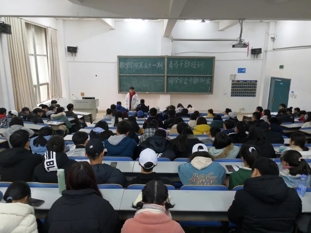 本站讯 12月1日中午,数学学院第五十一期青马干部培训暨团学分会干部例会在15308教室顺利召开。会议由学生团委副书记王旭日主持,团学分会全体学生干部、19级和20级各班班长、团支书参加.