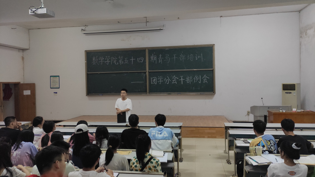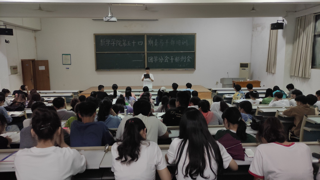 本站讯 5月13日晚,数学学院第五十四期青马干部培训暨团学分会干部例会在7T2教室顺利召开。数学学院团委书记程周出席,团学分会全体学生干部参加。