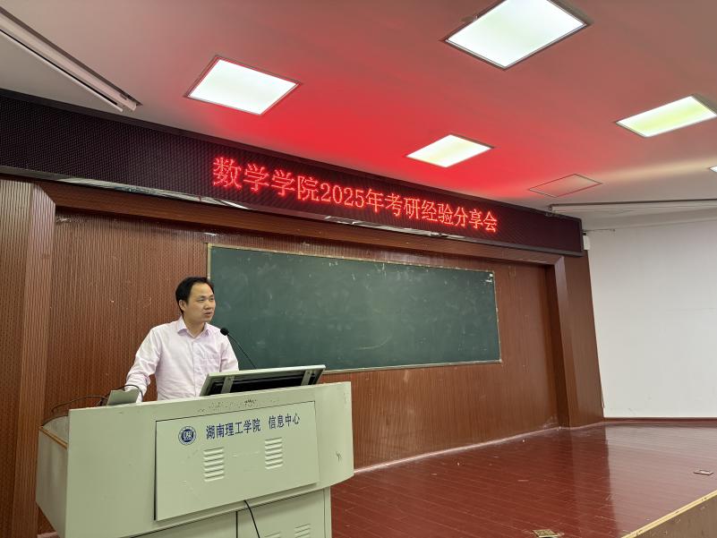 5月29日下午,数学学院在6栋学术报告厅顺利召开2025年考研经验分享会。数学学院院长周小强,党委副书记齐亮菲,辅导员佘宁远、赵馨出席,2022级全体非公费师范生参加。