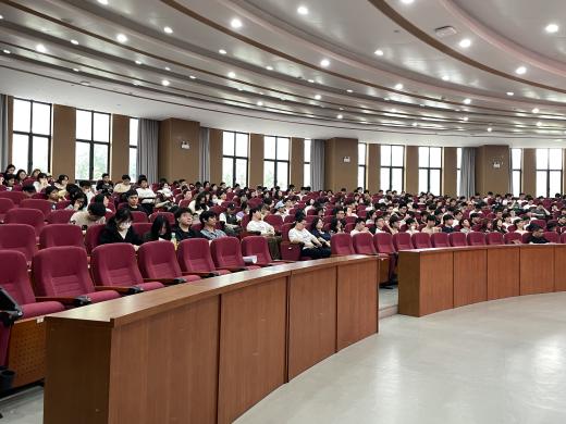 齐亮菲首先发表了讲话,她强调,当前正值学生就业和职业规划的关键时期,应把握住每一个学习和成长的机会,明确职业目标和规划,并付诸实践。随后,佘宁远以近年就业市场的动态趋势为切入点,结合学院历年毕业生的就业情况,为同学们深入全面地分析了当前的就业形势。徐笑天则鼓励同学们综合考虑多种就业方向,重点进行了武装动员和基层就业计划讲解,包括其政策优势、发展前景以及所需条件,希望同学们根据自身兴趣和能力,做出最适合自己的选择。最后,赵馨详尽解读了西部计划的主要内容和政策优待,并强调西部计划对于个人成长和社会发展的重要意义,鼓励有志于投身祖国西部基层建设的同学们积极报名参与。