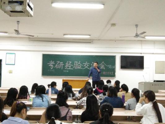 校园网讯4月18日晚,数学学院于5408教室召开以学硕考研为主题的第三场考研经验交流会;数学学院党总支书记阳鲁平,党总支副书记易政群,13、14级辅导员何铁勇出席了此次交流会;此次交流会邀请部分我院13级考研成功的同学为我院的考研意向生分享考研经验。