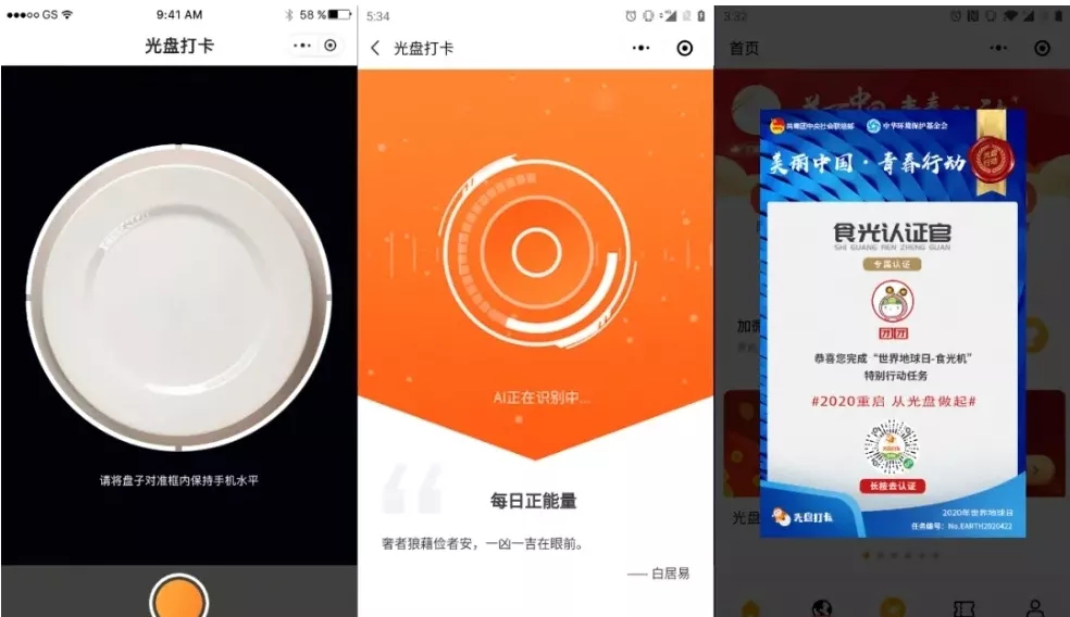 本站讯 2020年4月22日起,微信小程序“光盘打卡”活动正式启动。