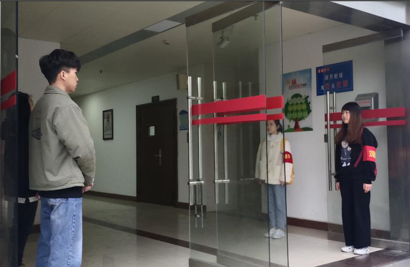 我院组织学生在五栋教学楼门口轮流值班,值班时间为周一至周五,早上7:35-8:00,下午13:35-14:00。文明督导顾名思义是监督大家的言行举止,做一个有素质的大学生。此次活动不仅在监督着他们,更是规范了自己的一言一行。我们是监督者,那就要起好带头作用。不严于律己,怎去管理他人。每天大家准时准点的站在自己的岗位上兢兢业业,一丝不苟。左臂套上红袖章,就知道责任在肩。