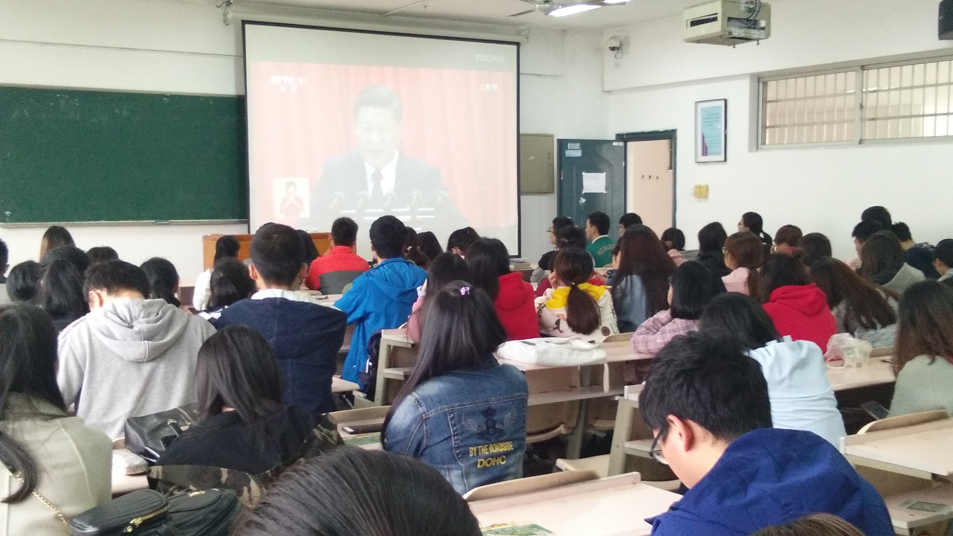瞧!同学们都在认真聆听着习大大的报告,不忘初心,砥砺前行,争做党的接班人~